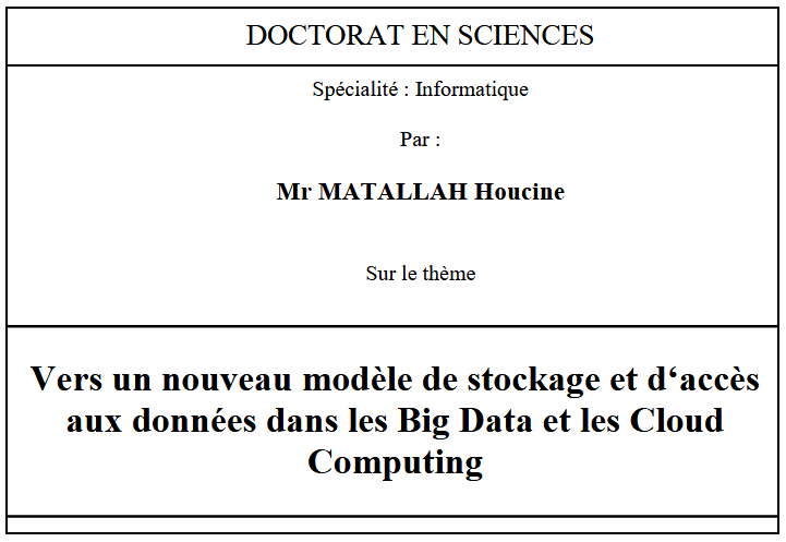 Modèle de stockage et d‘accès aux données dans les Big Data et les Cloud Computing